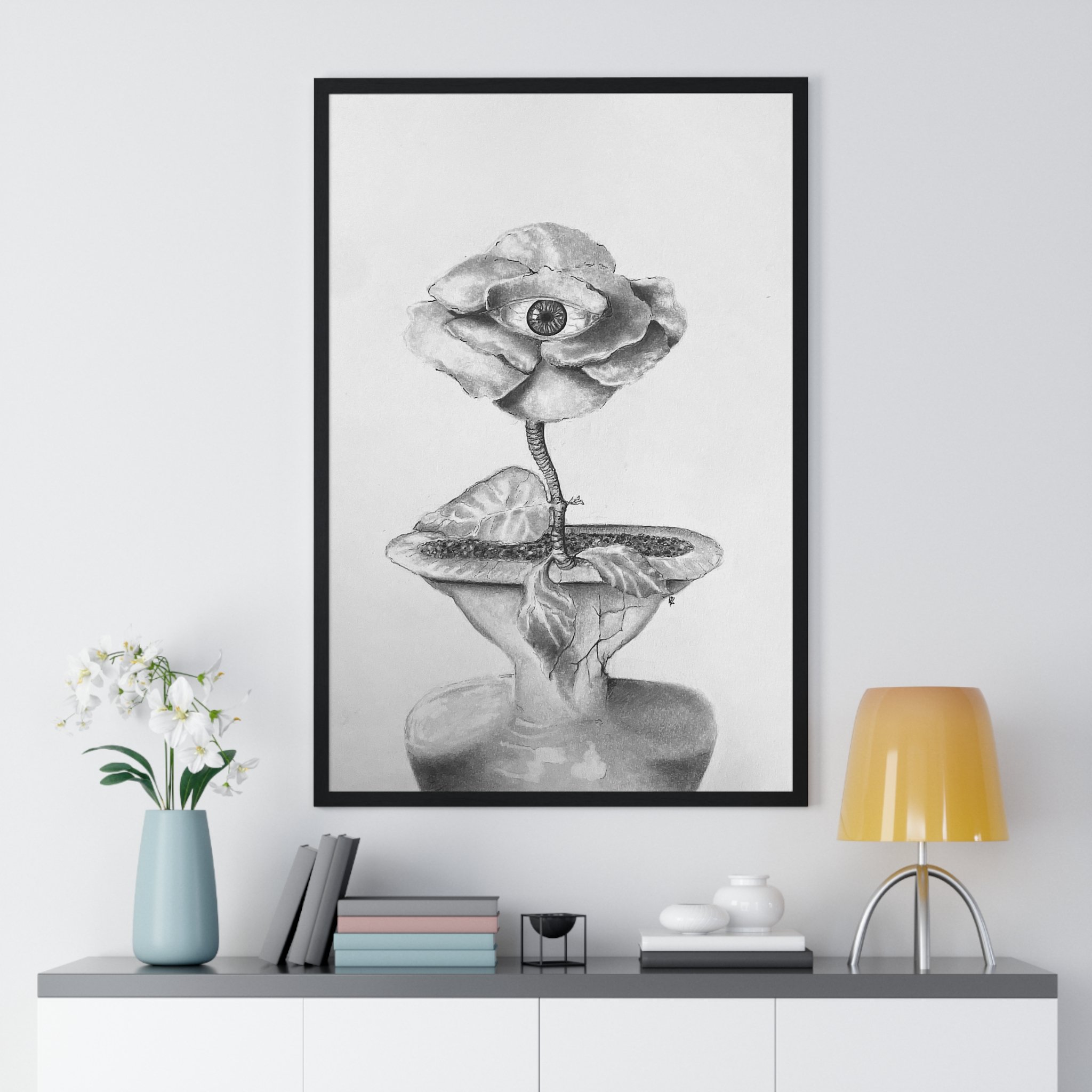 The Fragment depicts a singular plant rooted in soil, its eye steady and self-assured at the center. The gaze reflects awareness fully formed—no longer searching, but knowing. Leaves extend beyond the edge of the pot with ease, growth no longer tentative, but deliberate.
